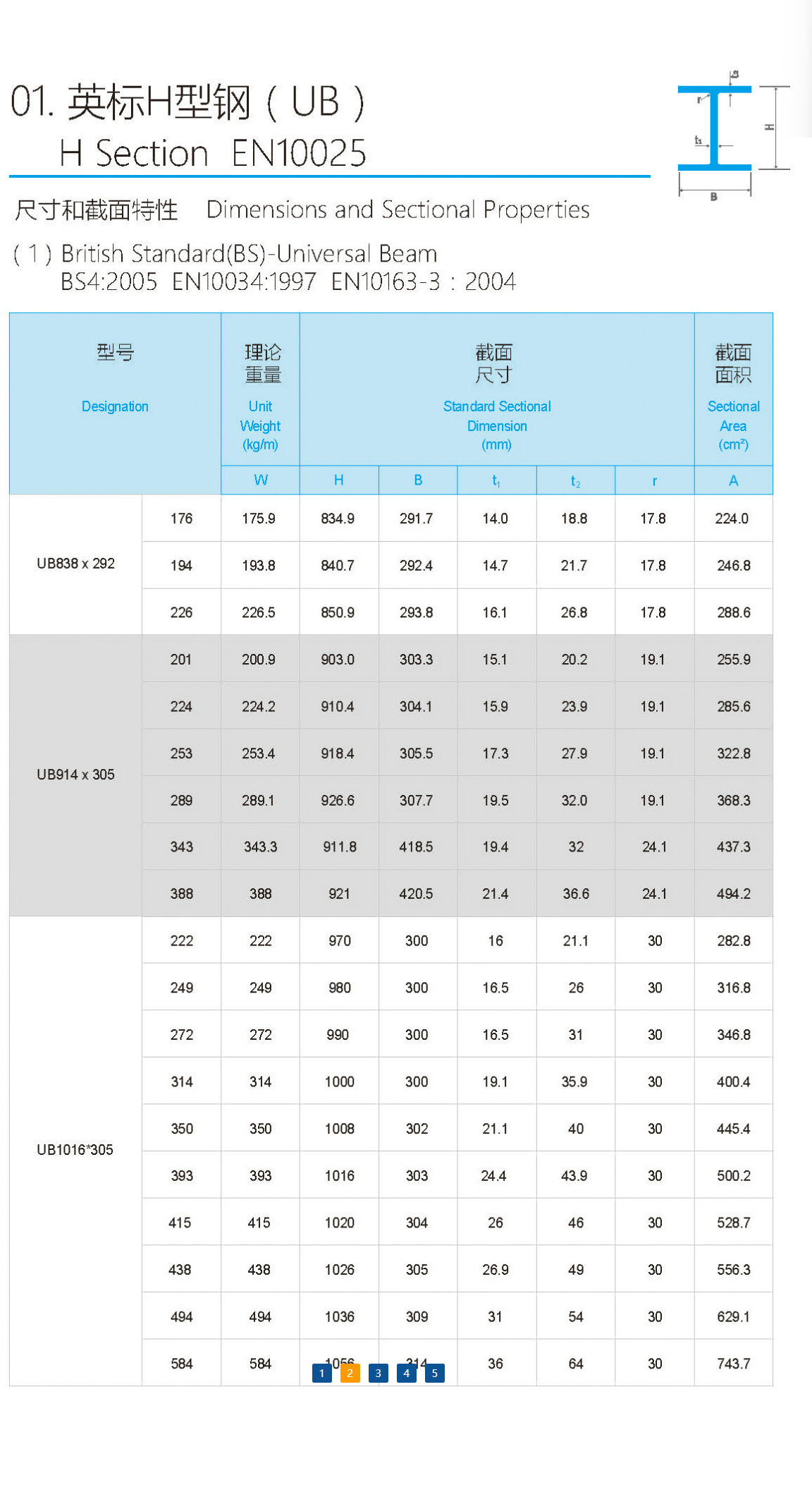 UB英標(biāo)H型鋼尺寸重量表