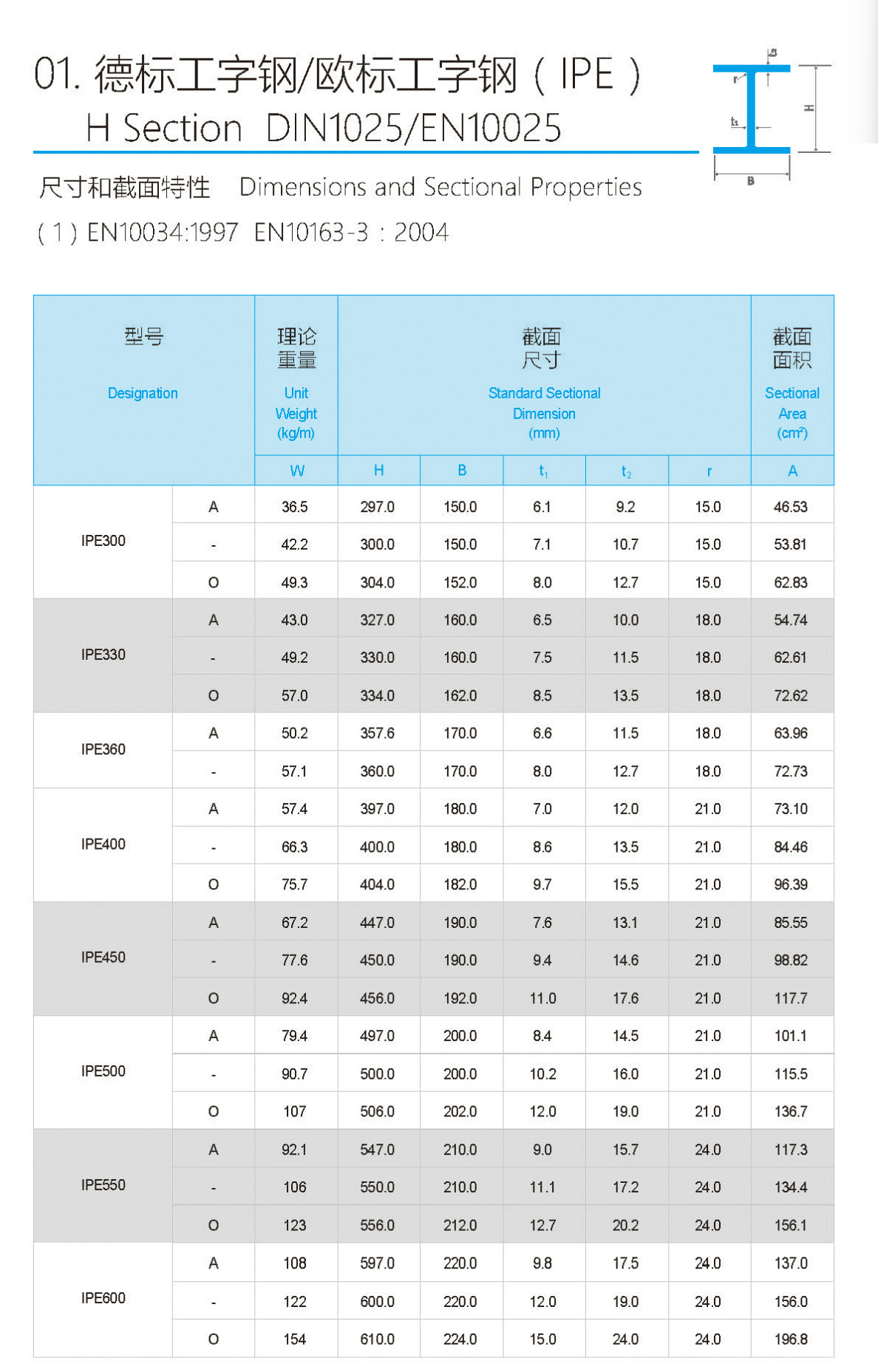 德標(biāo)/歐標(biāo)工字鋼規(guī)格尺寸標(biāo)準(zhǔn)