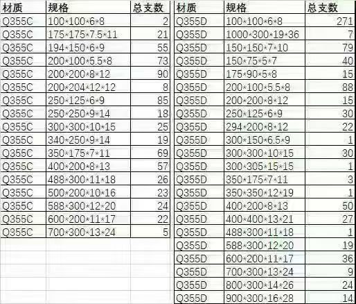 Q355DH型鋼現(xiàn)貨尺寸表